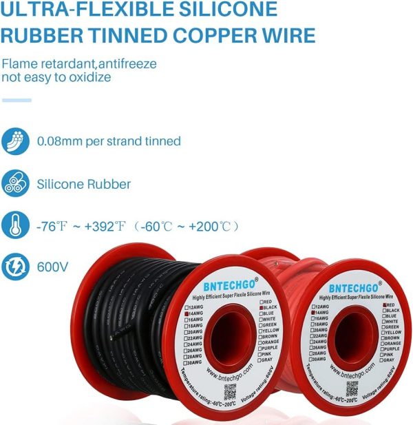 Upgrade your wiring projects with the BNTECHGO 14 Gauge Silicone Wire Spool and experience the convenience and quality that this product has to offer. Order yours today and take your electrical work to the next level.