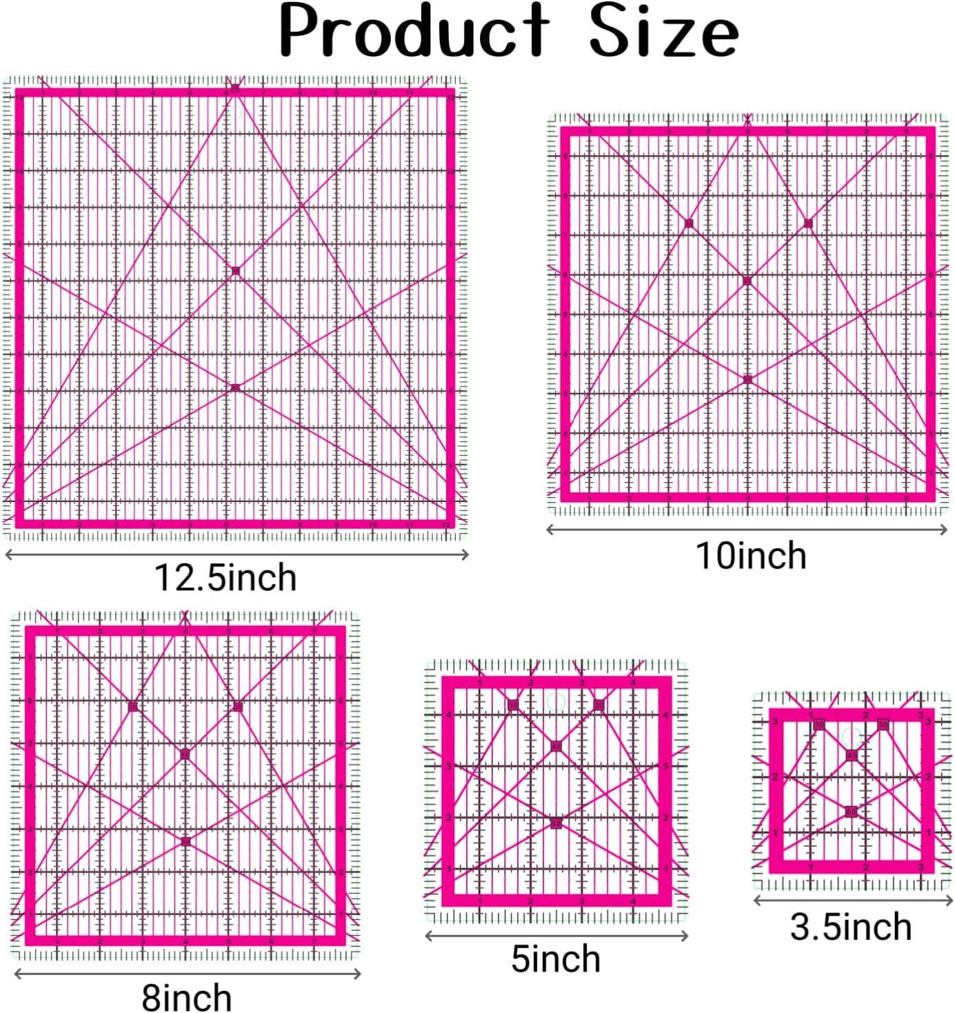 Quilting Rulers,5 Square Quilting Ruler Quilting Templates(3.5″,5″, 8″,10″,12.5″),Quilting Square Ruler,Quilting Rulers Non Slip